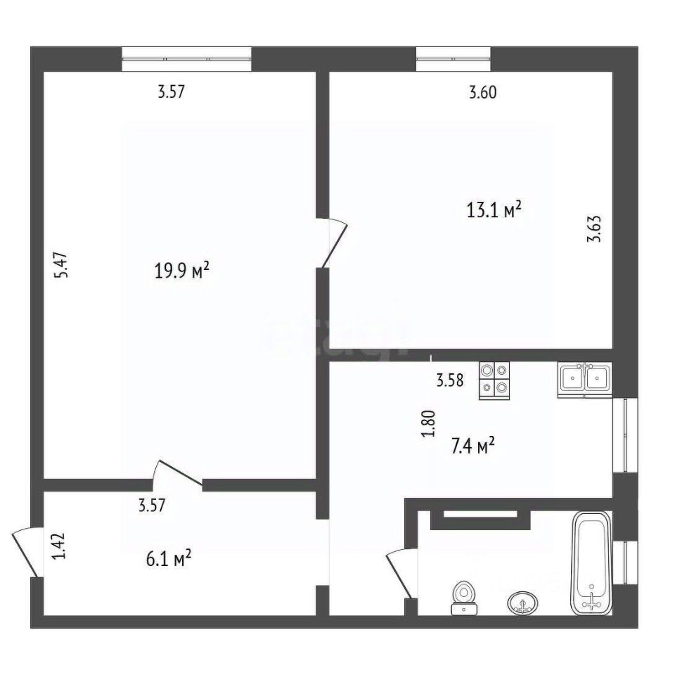 - Коммуникации: центральное отопление, холодная вода, новый объемный водонагреватель