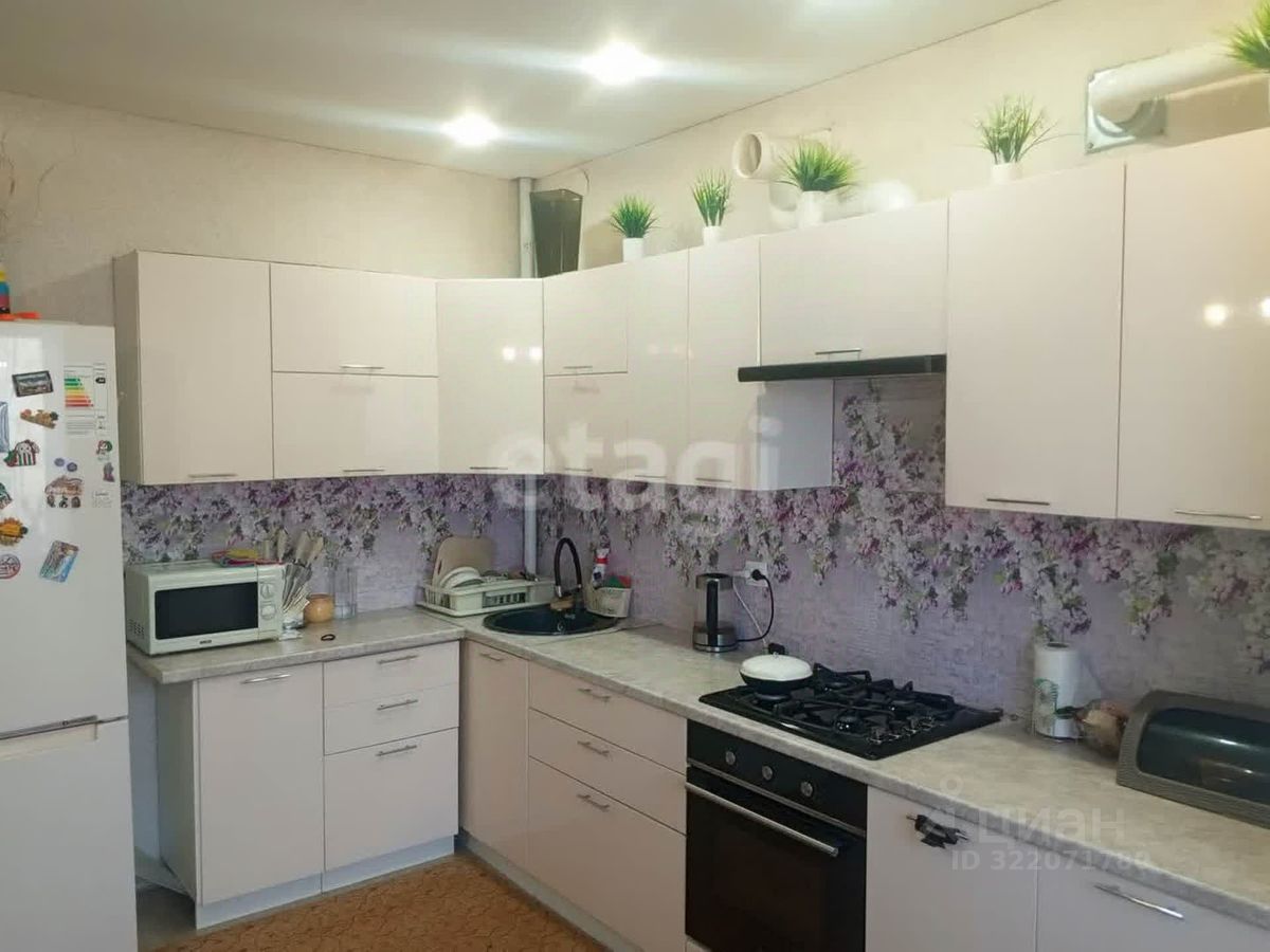 кухонный гарнитур, обеденный стол и стулья, диван на кухне, шкафы, диван и кровать, компьютерный стол, холодильник, микроволновка, газовая плита, стиральная машина, ТВ.
