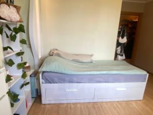 Общая площадь 71,3 кв.м. В квартире 3 жилых помещения: гостиная 23 кв.м. в данный момент совмещена с кухней, спальня 17 кв.м. и детская 14,2 кв.м. Обустроены 2 "мокрые" точки, т.е. из детской можно сделать отдельную кухню. Коридор 2,8 кв.м. Две больших лоджии 2,3 и 2 кв.м. Два санузла: ванная 4,6 кв.м., второй санузел 2,3 кв.м.