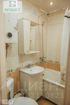 Совмещенный санузел, облицованный кафелем, отличается практичностью и эстетичным внешним видом. Дополнительно установлен водонагреватель.