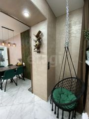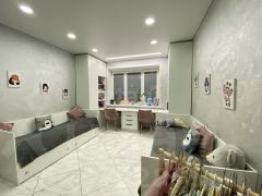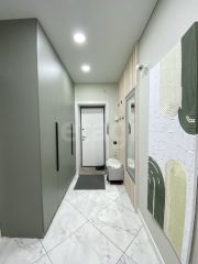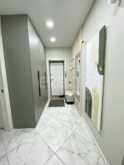 Состояние: Идеальное. Сделан качественный ремонт. Полы — практичный керамогранит (теплые полы во всей квартире), натяжные потолки, декоративная штукатурка во всей квартире, сонузел в кафеле.