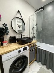 Техника и кухня: В квартире остаётся вся встроенная техника ( варочная панель, духовка, СВЧ, посудомойка, вытяжка). Стильный кухонный гарнитур.