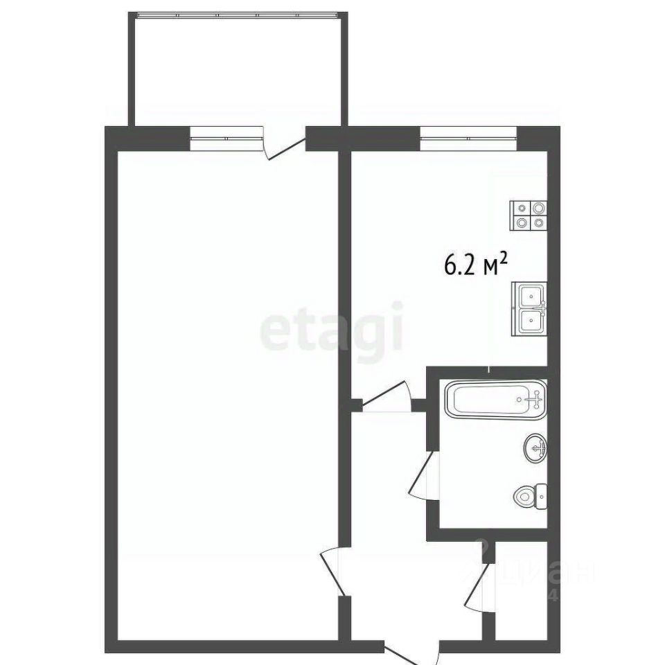 •1 комнатная, 29,1 кв.м. Этаж 2/5.