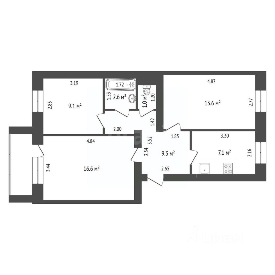 • Комнат: 3