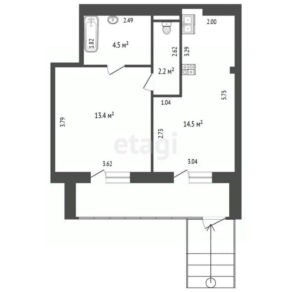 Планировка отличается продуманностью: раздельный санузел с просторной ванной комнатой, полностью облицованной кафельной плиткой; стиральная машина остается новому собственнику.