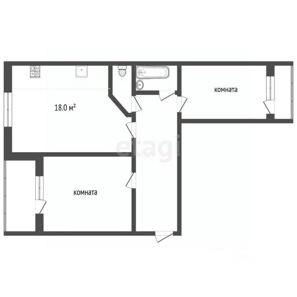 Две раздельные комнаты — удобно для семьи.