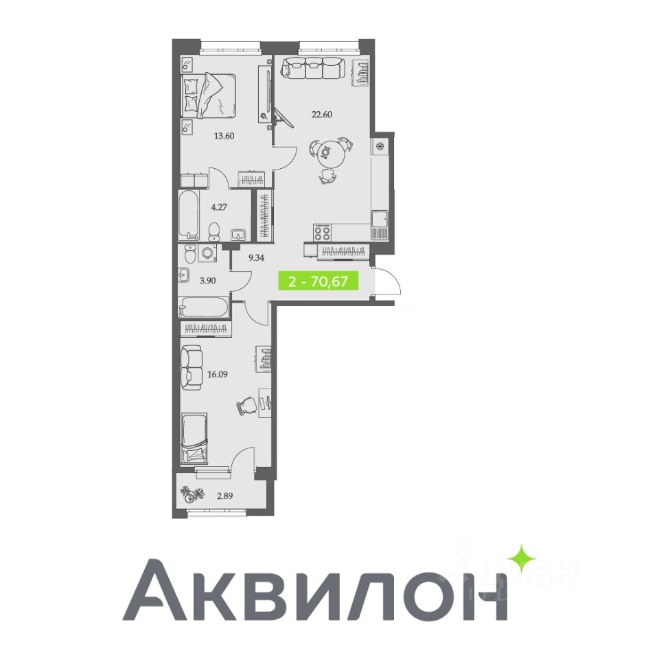 Общая площадь70,68 м²