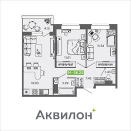 Общая площадь56,25 м²