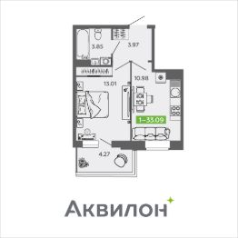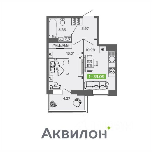 Общая площадь33,09 м²