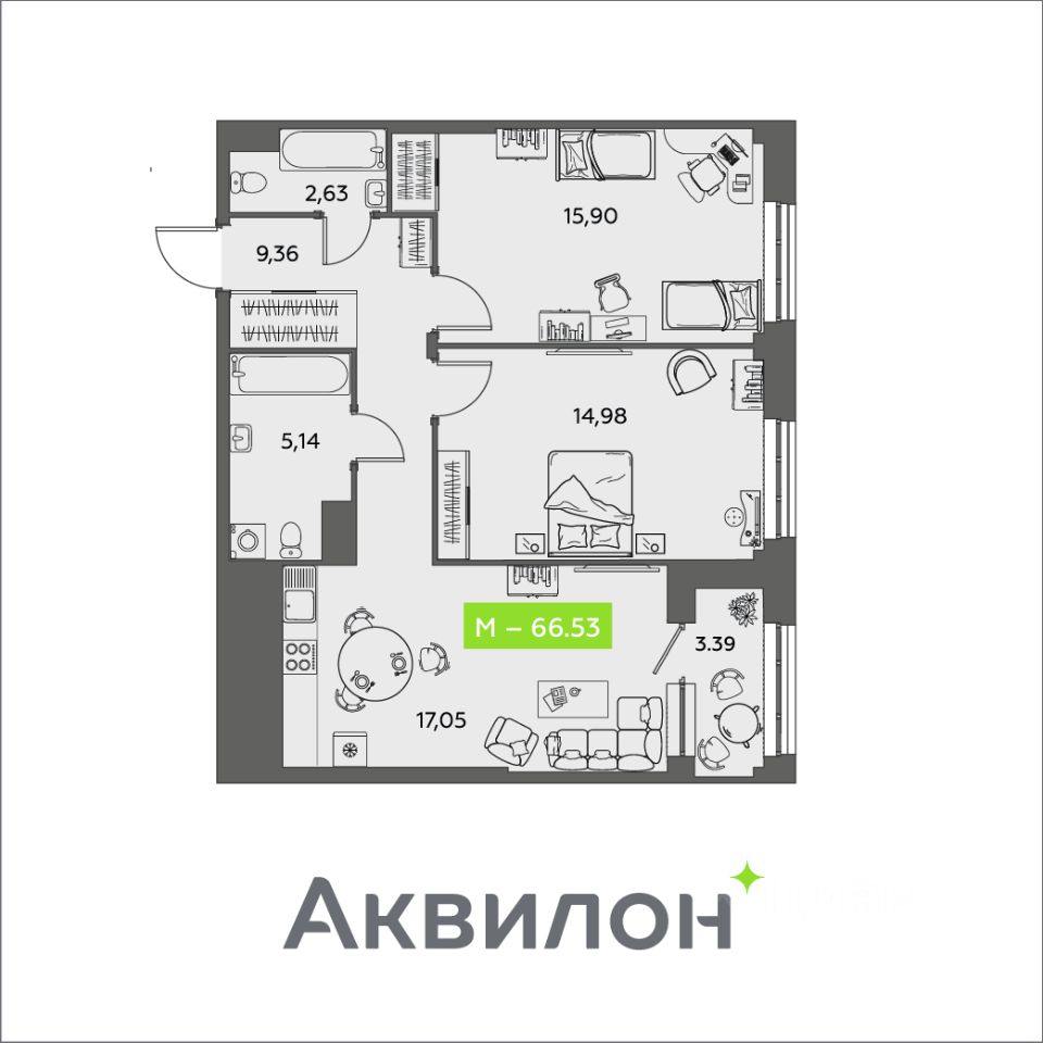 Общая площадь66,53 м²