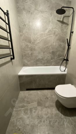 Санузел в керамограните , установлена новая сантехника : душ, ванна, полотенцесушитель, инсталляция и гигиенический душ и потайной люк.