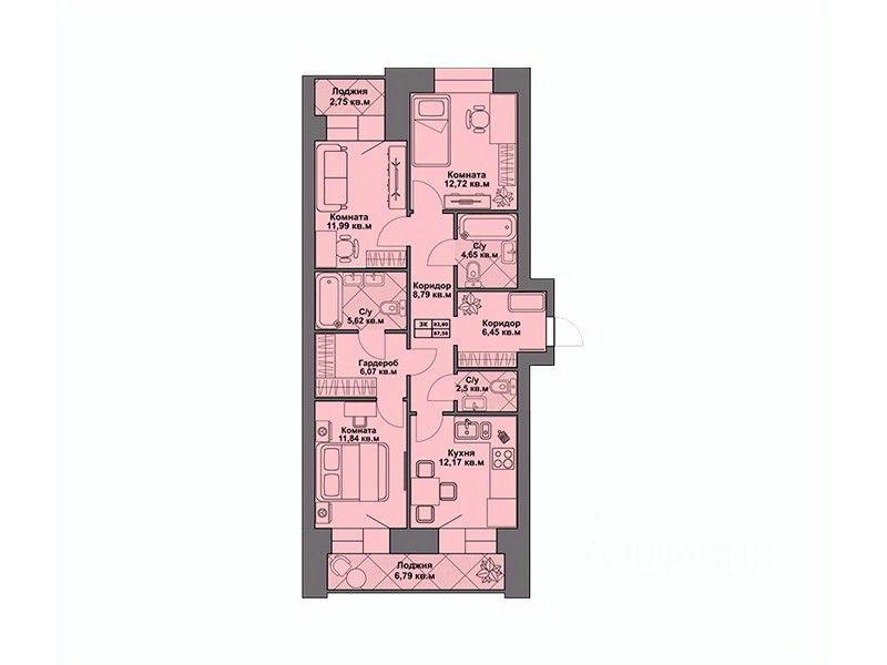 Продается 3-комн. кв-ра площадью 87.56 кв.м на 6 этаже 8 этажного кирпичного дома в Дом "Есенин" ГК Кронекс. Добро пожаловать в авторский дом "Есенин" новое слово в городском комфорте.