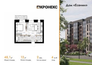 Продается 2-комн. кв-ра площадью 48.09 кв.м на 4 этаже 8 этажного кирпичного дома в Дом "Есенин" от ГК Кронекс. Добро пожаловать в авторский дом "Есенин" новое слово в городском комфорте.