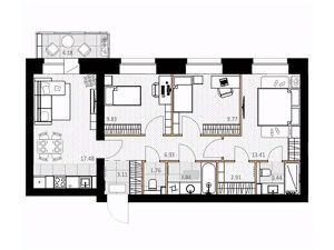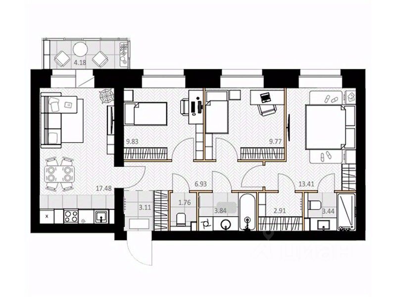 Продается 4-комн. кв-ра площадью 73.73 кв.м на 1 этаже 8 этажного кирпичного дома в Дом "Есенин" ГК Кронекс. Добро пожаловать в авторский дом "Есенин" новое слово в городском комфорте.