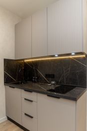 Кухонный гарнитур полностью подготовлен к использованию.