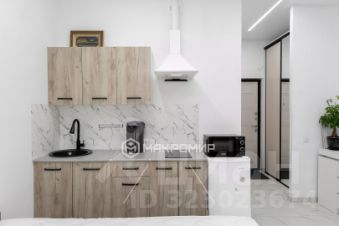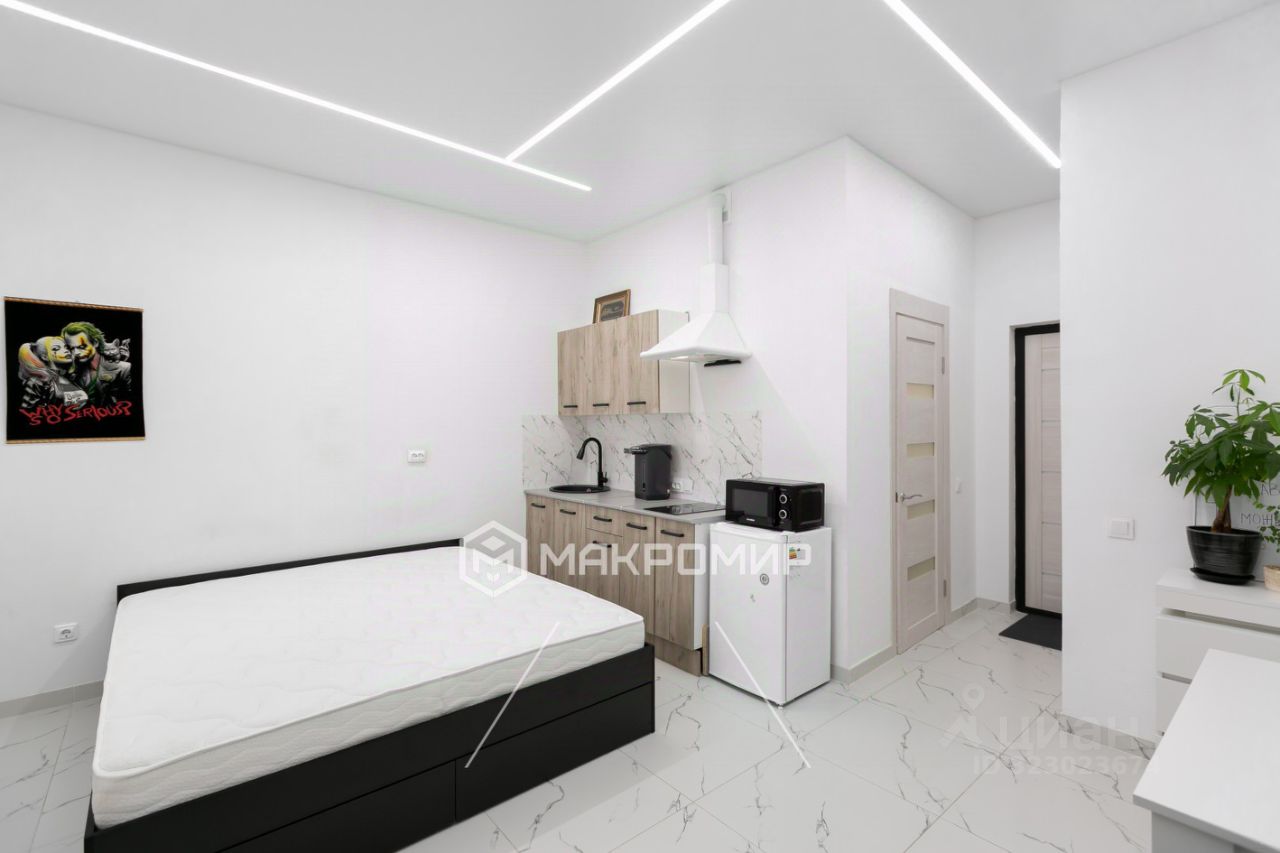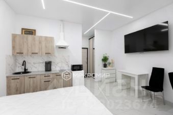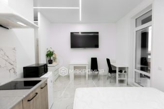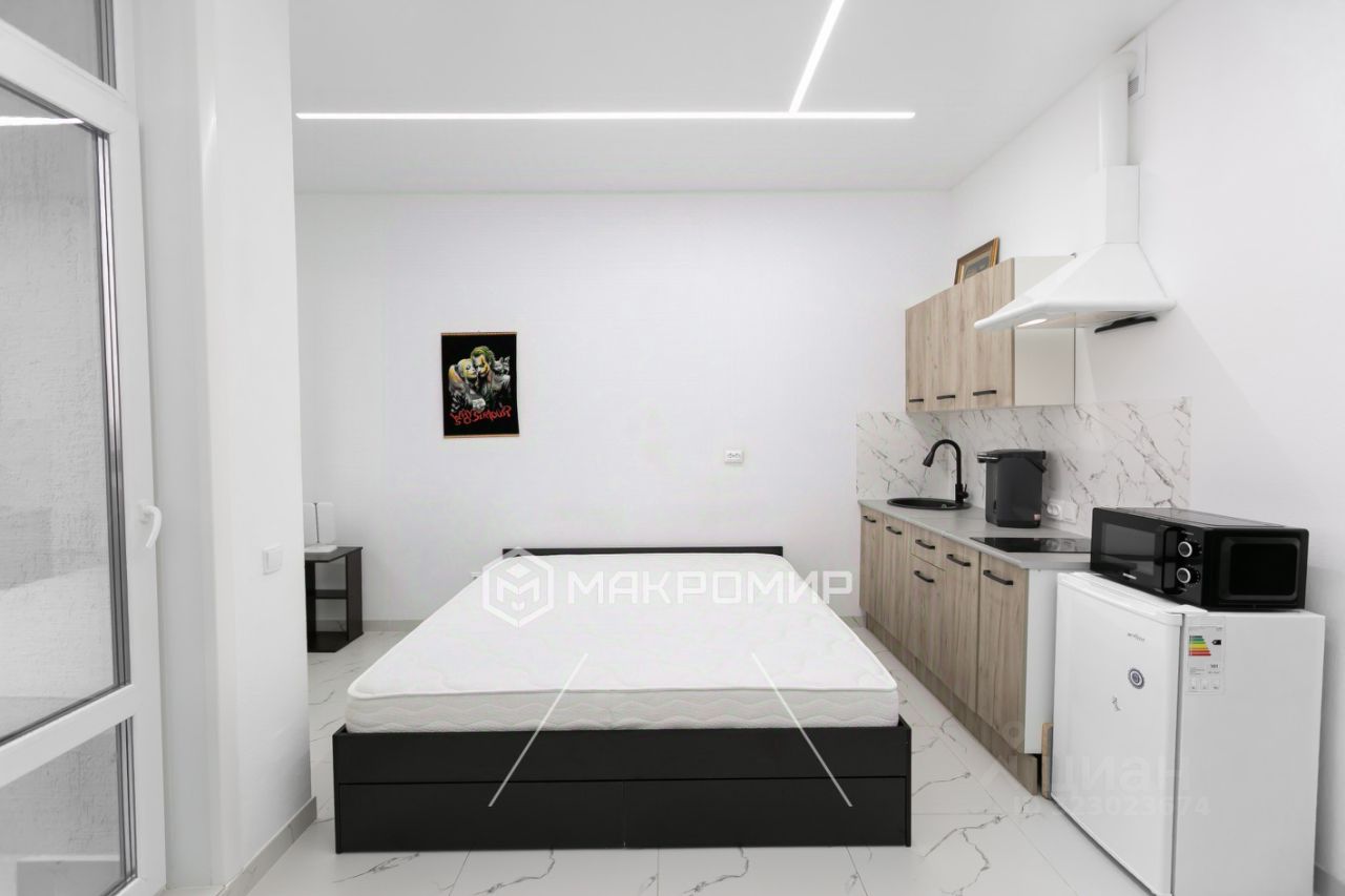 Общая площадь студии 23.2 квадратных метра. Дом новый, монолитно-кирпичный, 2023 года постройки.
