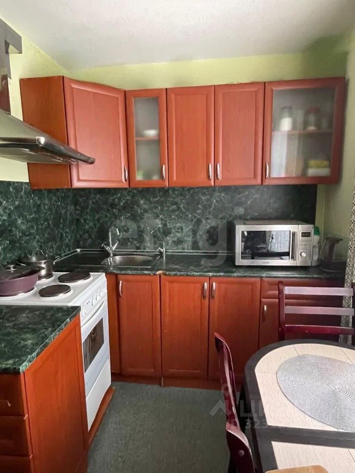 В квартире сделан косметический ремонт, просторная комната (18,1 кв.м.), оборудованная кухня (8,8 кв.м.), совмещенный санузел, напольное покрытие — ламинат и линолеум, пластиковые окна выходят во двор и на парковку.