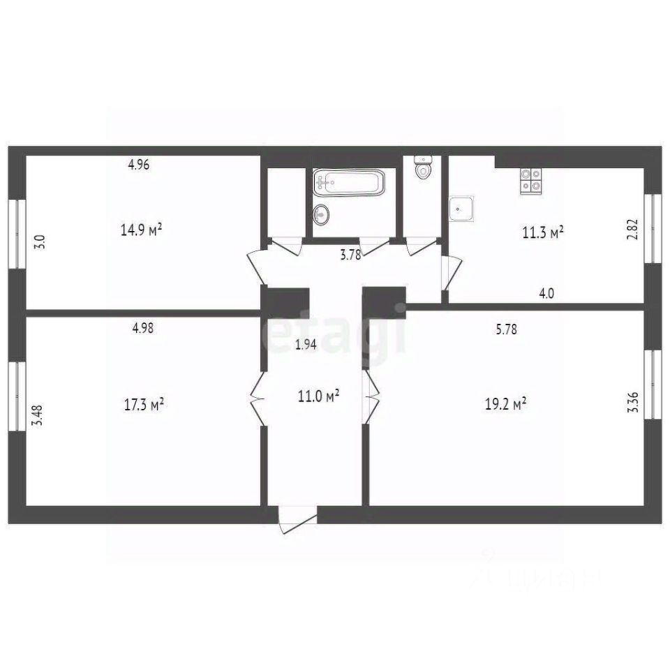 Планировка состоит из трех изолированных комнат, что обеспечивает комфорт и приватность для всех жильцов.