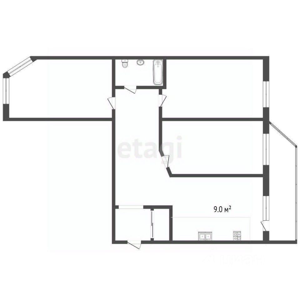 Квартира теплая и светлая, расположена на 3 этаже 9-ти этажного кирпичного дома. Индивидуальная планировка квартиры предполагает кухню почти 10 кв. метров, широкий коридор, совмещенный санузел, 2 спальни и просторную гостиную.