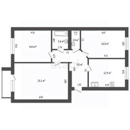 - 3 изолированные комнаты площадью: 25.1 / 14.6 / 14.8 кв.м.