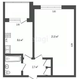 Санузел совмещенный, что является практичным решением для небольшой квартиры. Недавно были заменены трубы.