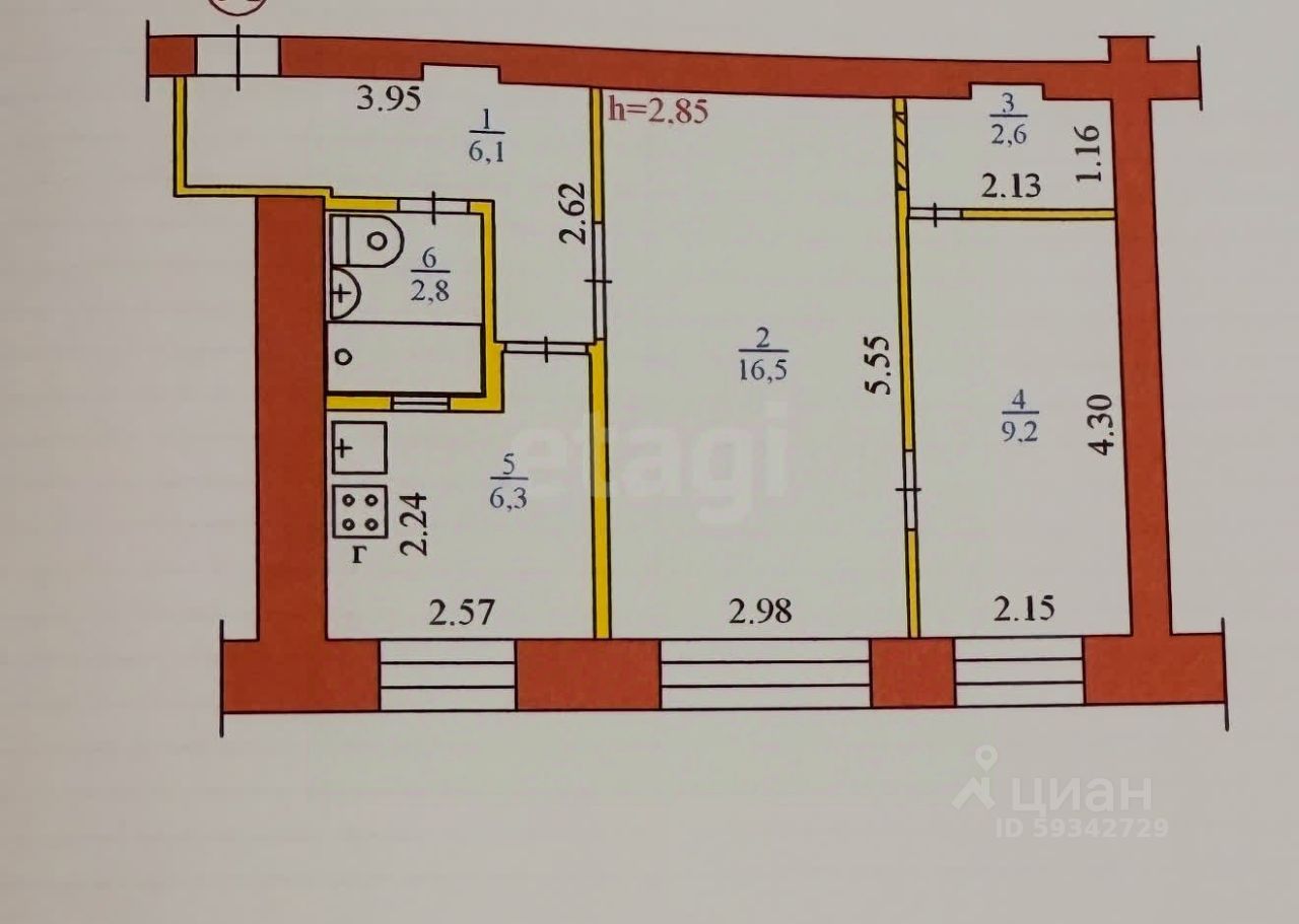 На продаже 2-х комнатная квартира на 1 этаже в кирпичном доме!