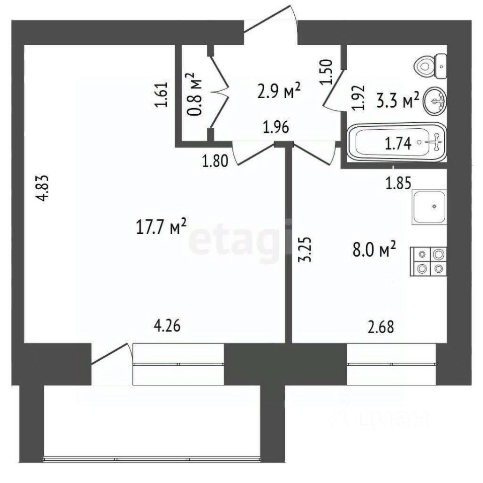 Квартира улучшенной планировки, общая площадь 32.3 кв.м., кухня 8 кв. м., удобной формы где комфортно располагается кухонный гарнитур и обеденная зона.