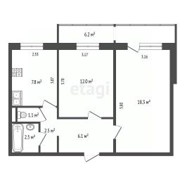 Две просторные раздельные комнаты 18,3 м2 и 12 м2 - это личное пространство для каждого и полная свобода для расстановки мебели.