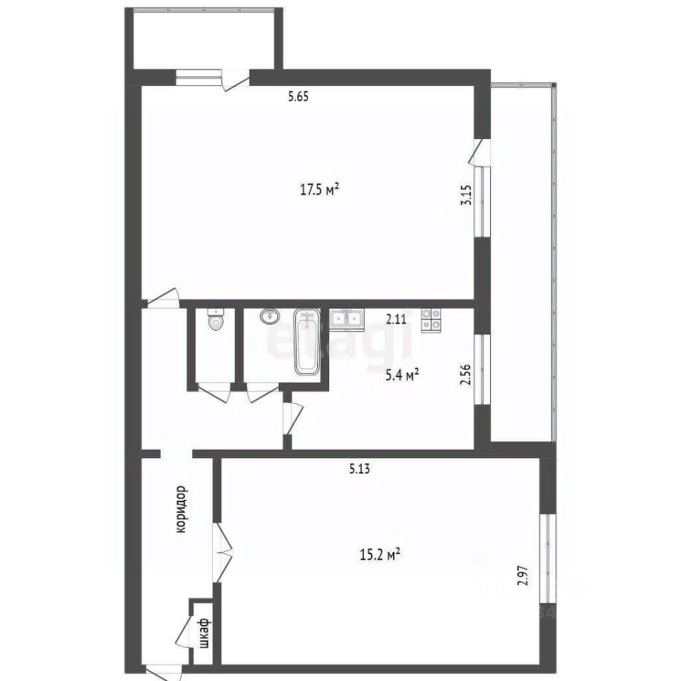 - Комнаты изолированные (17.5 м2 и 15,5 м2)