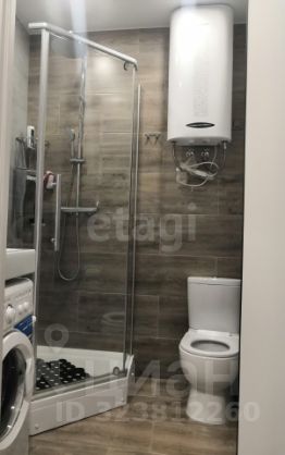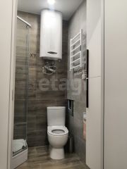 В санузле установлена душевая кабина, полотенцесушитель, зеркало с подогревом и предусмотрено место для стиральной машины.
