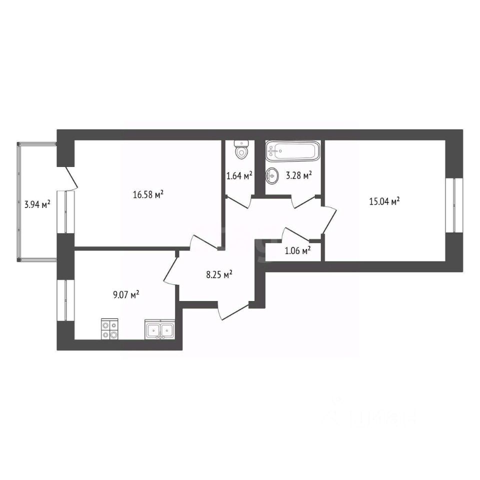 — две изолированные комнаты — можно обустроить спальню и гостиную или детскую;
