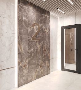 Премиальная отделка парадных, светопрозрачные входные группы, бесшумные премиальные лифты с потолками 2,3 м.
