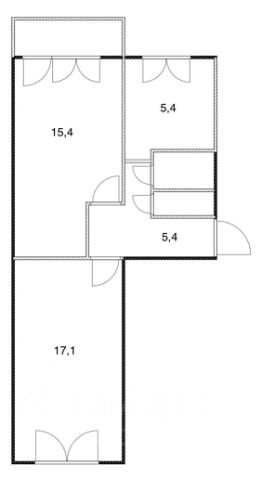 Площадь квартиры - 46.4 кв.м, две раздельные комнаты 17,1 и 15,4 кв.м, а кухня - 5,4 кв.м. Высота потолков - 2,52. Окна выходят на разные стороны дома. На все установлены счетчики.