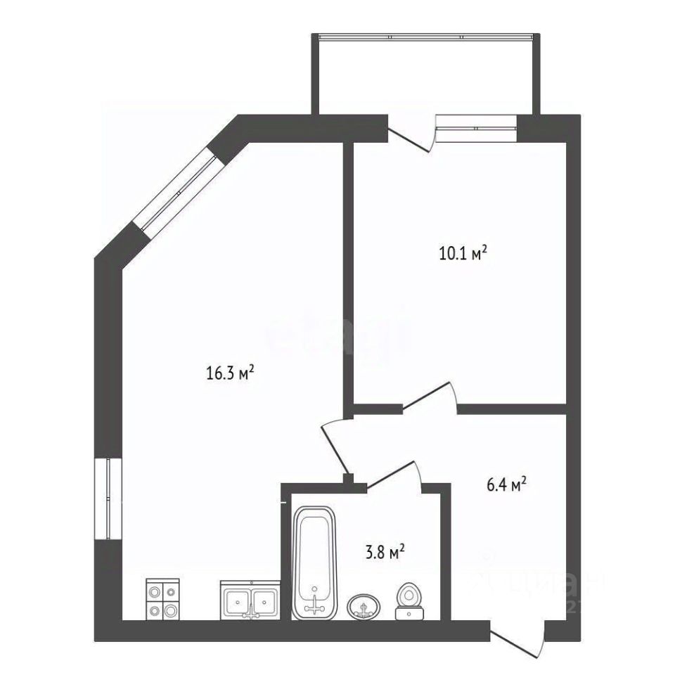 Светлая гостиная-кухня 16 м² с двумя окнами — идеально для вечеринок с друзьями и семейных ужинов.
