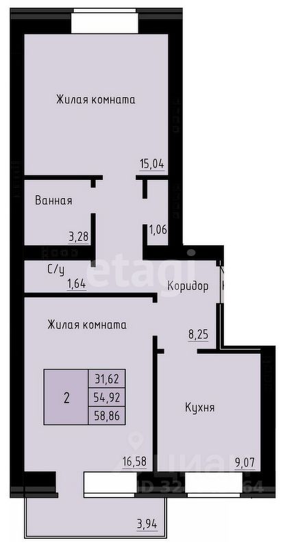 — две изолированные комнаты 15,04 и 16,58 кв.м. — удобно для семьи;