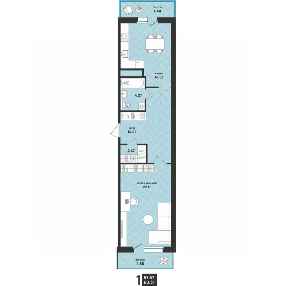 Общая площадь60,31 м²