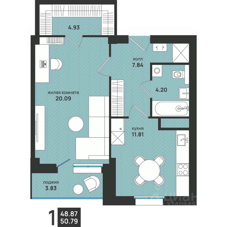 Общая площадь50,79 м²