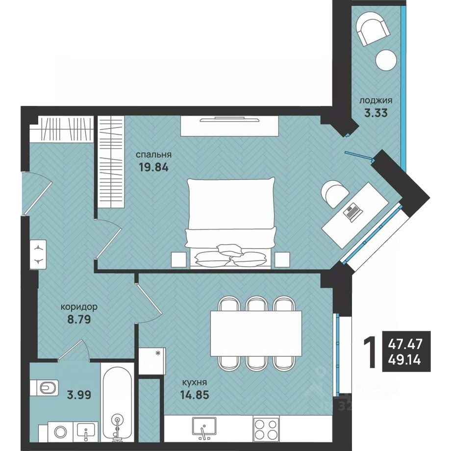 Общая площадь49,14 м²