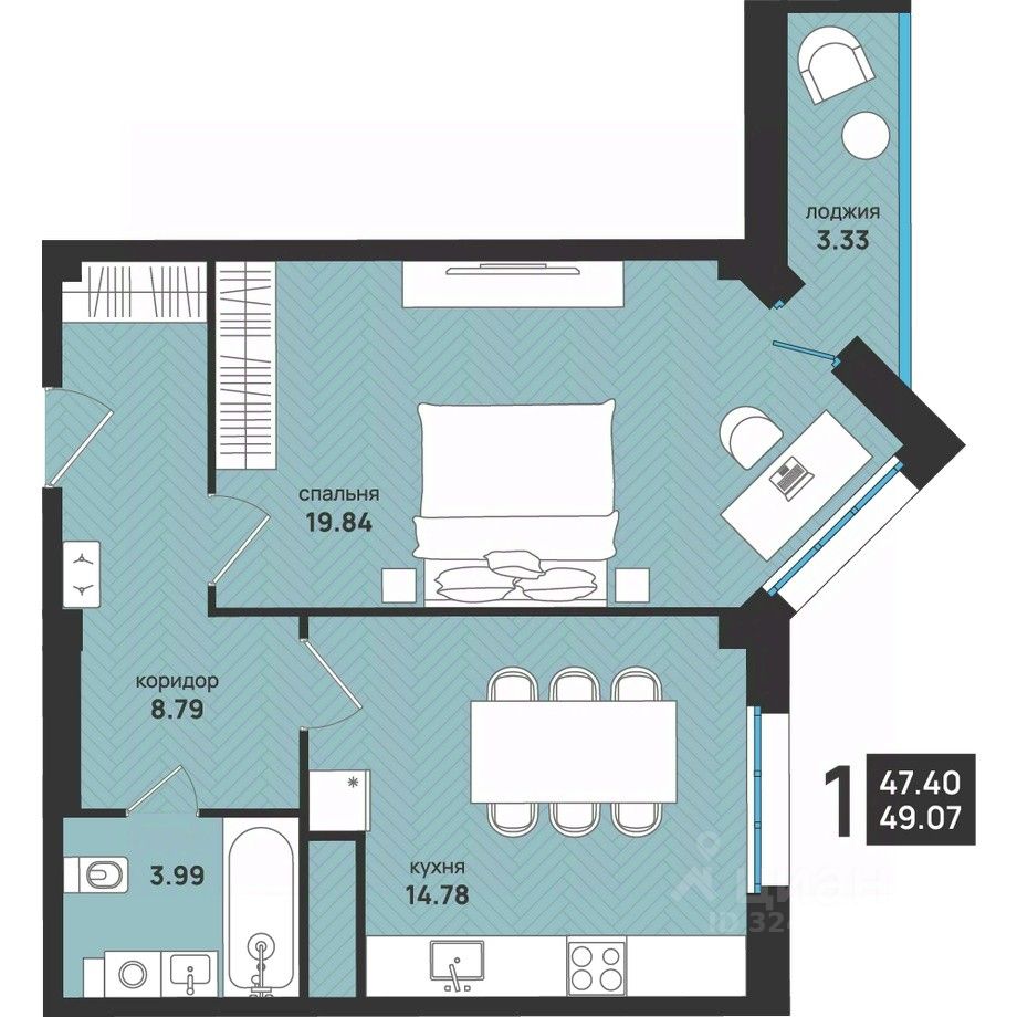 Общая площадь49,07 м²