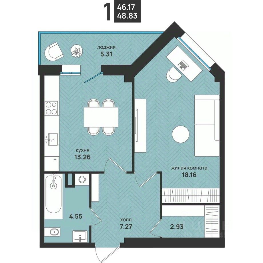 Общая площадь48,83 м²