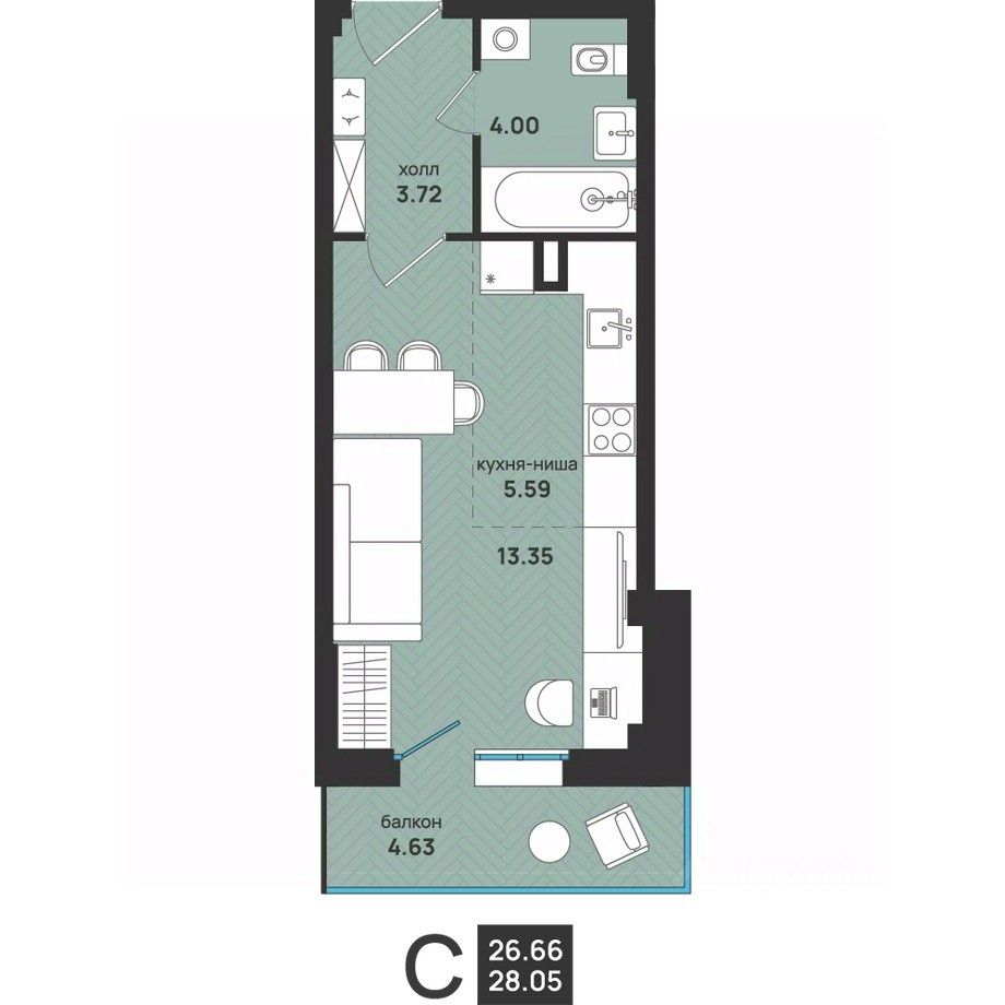 Общая площадь28,05 м²