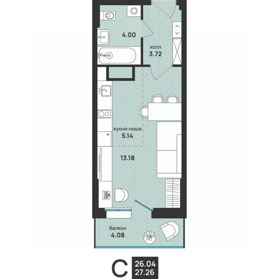 Общая площадь27,26 м²