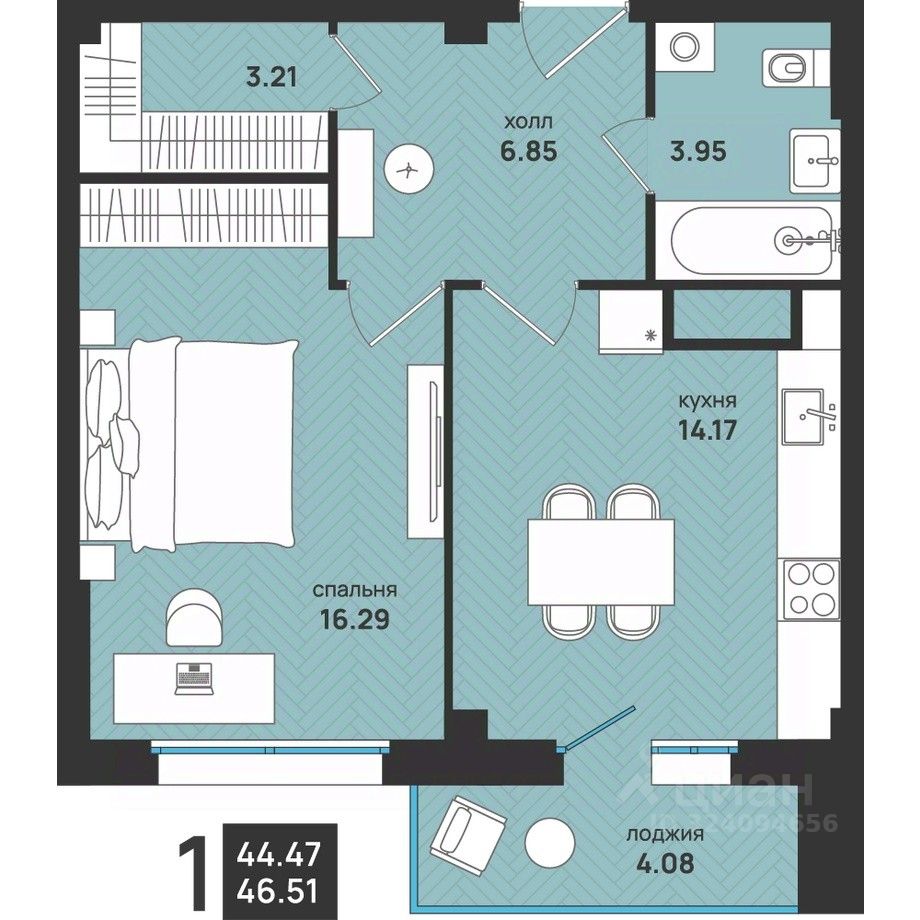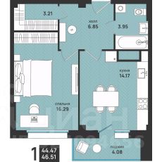 Продается 1-комн. квартира, 46,51 м²