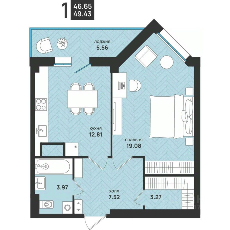 Общая площадь49,43 м²