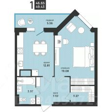 Продается 1-комн. квартира, 49,43 м²