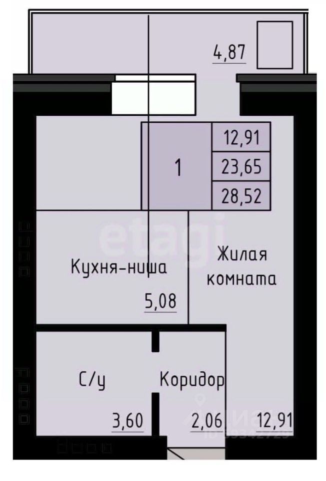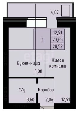Квартира-студия площадью 28.52 м² расположена в современном кирпичном доме на Левом Берегу Архангельска.