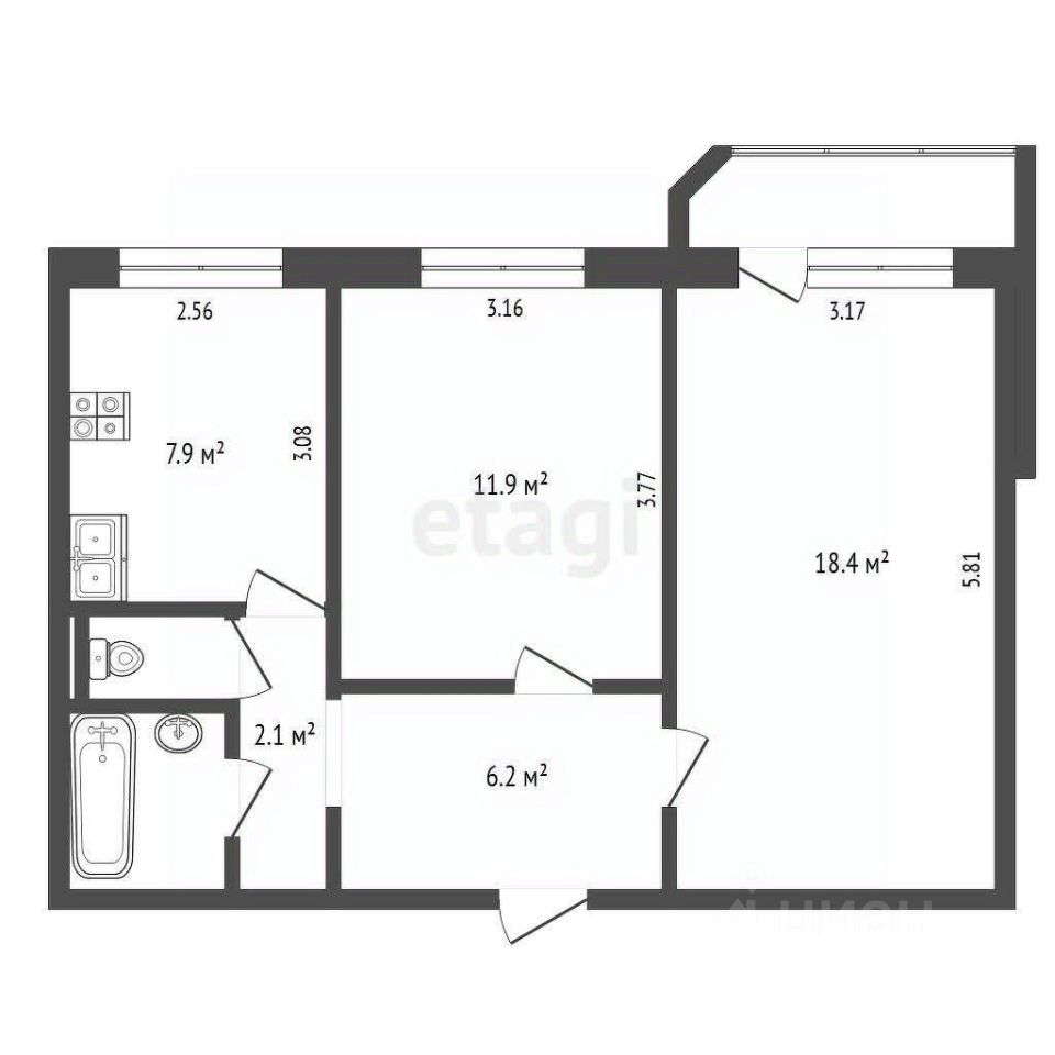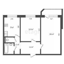 Комнаты раздельные 11,9 кв. м и 18,4 кв. м. Из большой комнаты выход на застекленный балкон, который полностью обшит, утеплен пол, сделано дополнительное место для хранения.