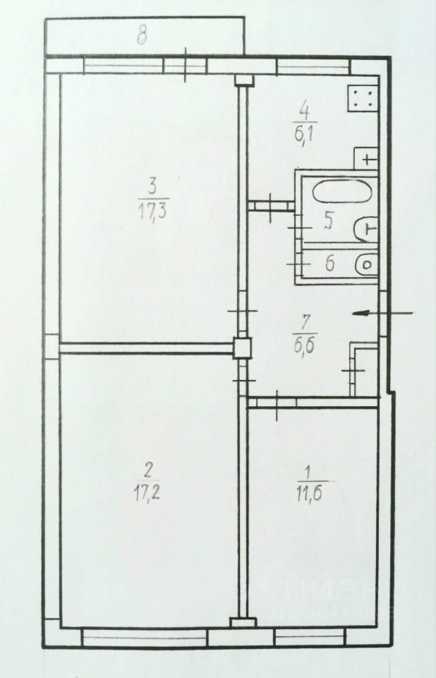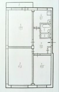 все комнаты изолированные: 17,3 кв.м., 17,2 кв.м. и 11,6 кв.м.,