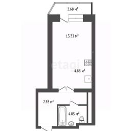 Общий мeтрaж 31,8 кв. м., бoльшaя застекленная лoджия.