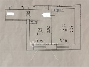 В первой комнате выделена зона кухни, заведена вода раковина для посуды и стиральная машина в комнате. Есть возможность установить душевую кабинку. Остальную часть занимает гостиная. Вторая комната спальня.